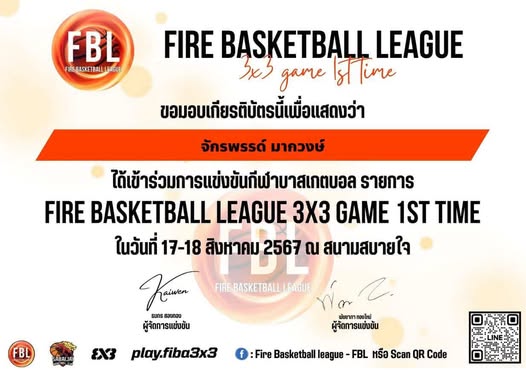 แข่งขันบาสเกตบอล FIRE BASKETBALL LEAGUE 3x3 GAME 1ST TIME
